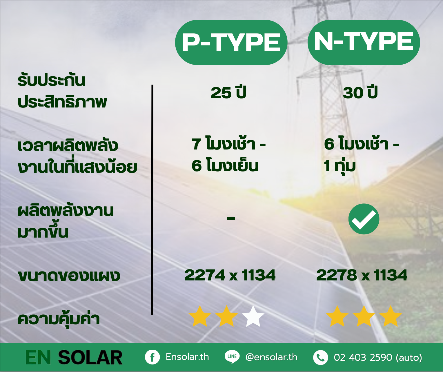 แผงโซล่าเซลล์แบบ P-TYPE และ N-TYPE แตกต่างกันอย่างไร ??